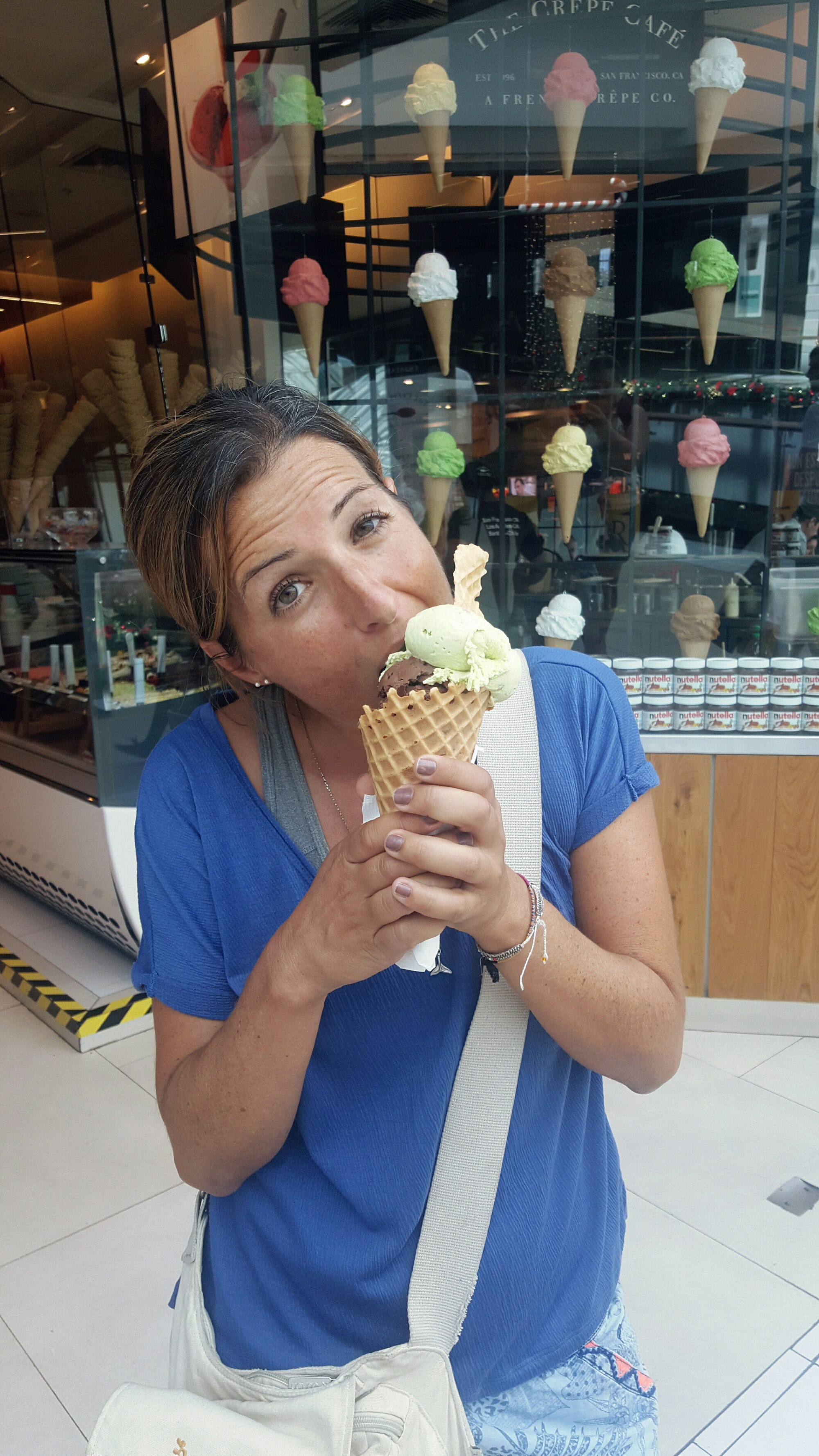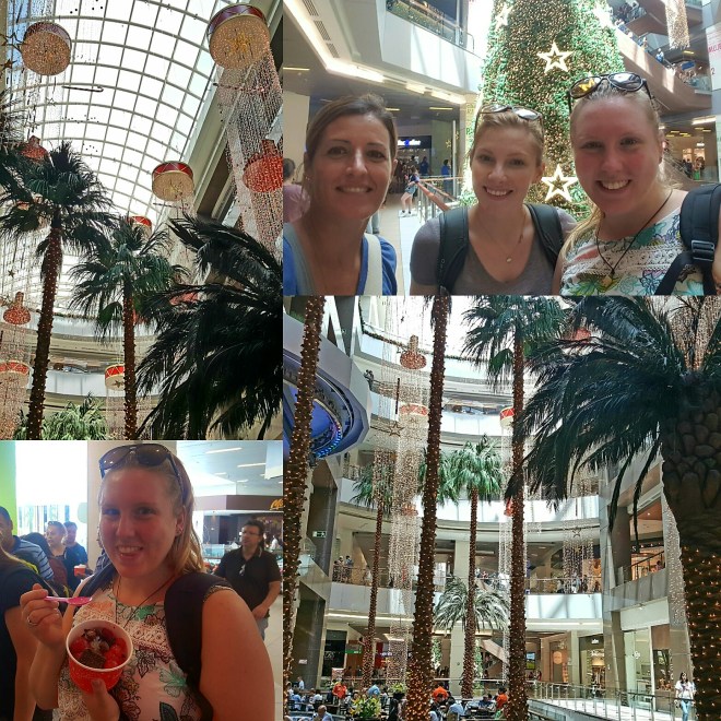 Der Park ist ganz nett, aber wir vermissen alle den Charme der Stadt und sind bisher etwas enttäuscht. Tiff ist schon zwei Tage länger da und schwärmt sowieso die ganze Zeit nur von Buenos Aires. Unser Spaziergang endet im höchsten Gebäude Südamerikas ‚Torre Gran Costanera‘ – und was sollte dieses anderes beherbergen als eine Shopping mall. Drei Frauen alleine hier – ihr könnt euch denken, was das bedeutet… Wir bestaunen zunächst den riesigen Weihnachtsbaum und die Dekoration im Inneren und machen uns dann auf die Suche nach Eiscreme. Ema und Tiff entscheiden sich für Joghurtsofteis mit topping, ich wähle den Klassiker.