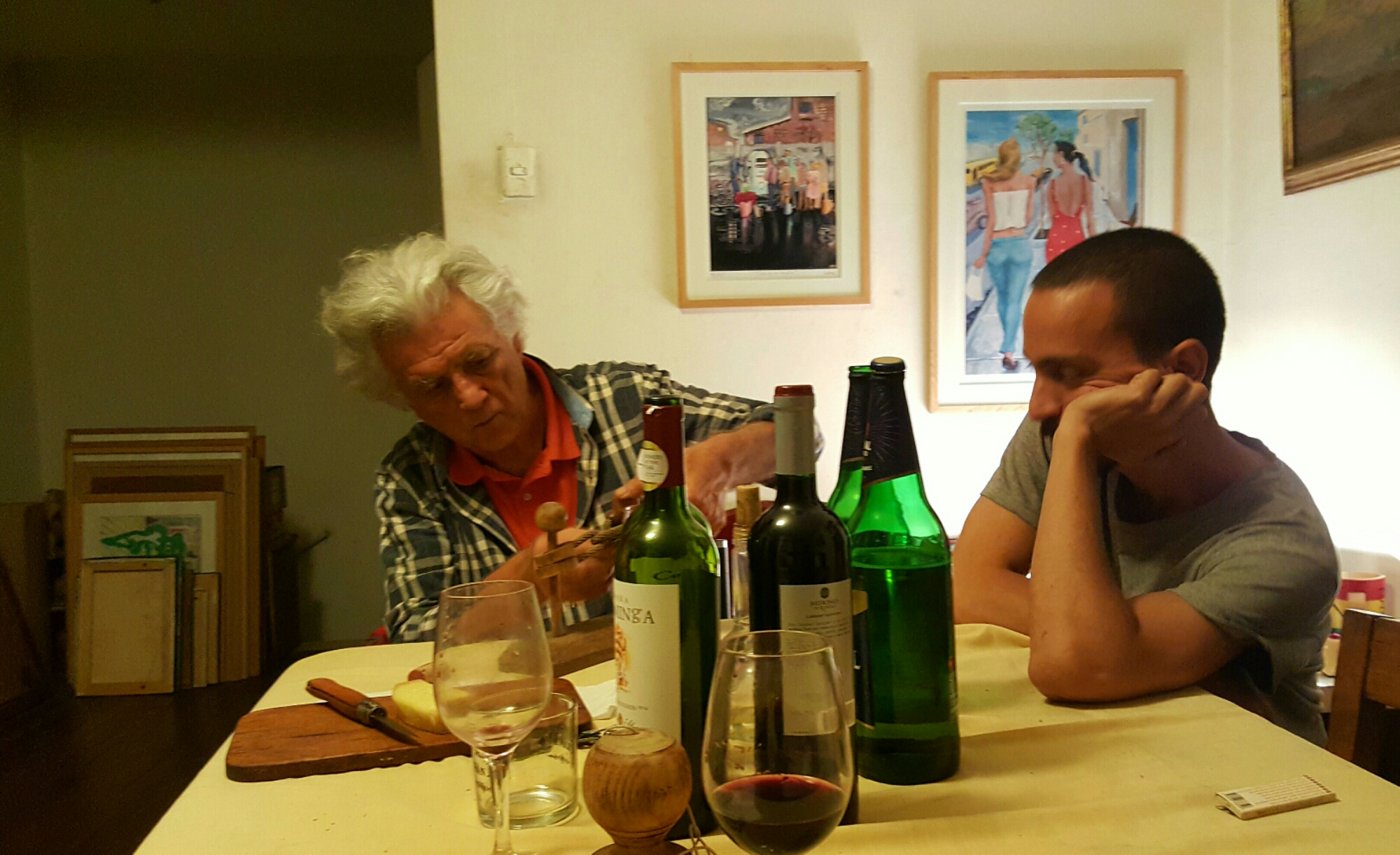 Sebastian, 32, wohnt im Viertel Brasil mit seinem besten Freund in einer großen Altbauwohnung in einem Hinterhof. Er ist Grafikdesigner und arbeitet von Zuhause aus. Er hat gerade die Musik der Beatles für sich entdeckt, hört ansonsten auch indische Musik oder Elektro. Mit den Hanfpflanzen, den Beatles und der einfach gehaltenen Wohnung mit Tüchern an den Wänden komme ich mir vor wie in der Hippiezeit. Sein Arbeitszimmer gefällt mir am besten, gute Energie hier. Sebastian nimmt sich Zeit für mich und am zweiten Abend gehen wir mit zwei seiner Freunde auf ein Glas Wein zu seinem Nachbarn Andres Gana, ein bekannter chilenischer Maler.
