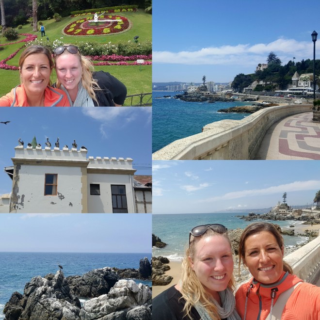 Mittags fahren wir in den Nachbarort Viña del Mar – ein Unterschied wie Tag und Nacht! Hier fließt das Geld: große Hotels, gepflegte Grünanlagen, Badestrand, lockende Shopping malls. Wir spazieren am Meer entlang, bummeln durch die Stände an der Promenade und machen uns dann auf die Suche nach einer Bar um was zu trinken. Heute lernt Tiff von mir ihren deutschen Satz ‚Verficktes Samsung hat mich gefickt‘ während wir gerade durch ein Shoppingcenter laufen und sie wiederholt ihren Satz fortlaufend bis er sitzt. Lautstark feilt sie an der Aussprache und ich fühle mich zum ersten Mal wie meine Freundin Anja mit mir, wenn ich mal wieder fluche. Ich höre nur noch ficken und hätte jetzt gern ne Sonnenbrille. Die blonde primitive Frau neben mir? Nee, kenn ich nicht. Wir finden eine Bar mit happy hour, gönnen uns zwei Cocktails und halten danach noch beim Araber für Falafel.