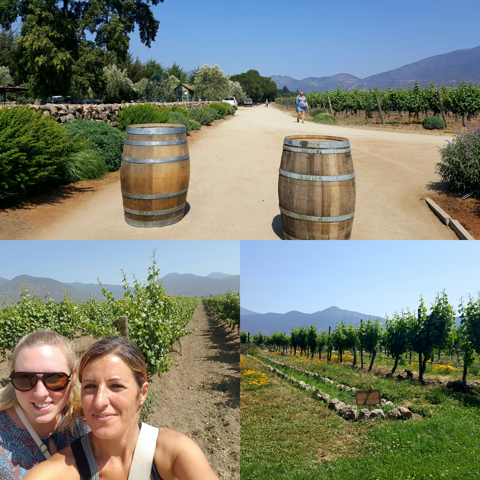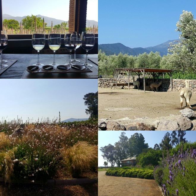 Da es hier in der Nähe die berühmte Weingegend Casablanca gibt und ich gerne eine Weinprobe machen würde, bleibt Tiff einen Tag länger um noch einen schönen Tag zusammen zu verbringen – perfekte Gelegenheit. Unter den mindestens zehn Weingütern wählen wir ‚Emiliana‘: hier wird ohne Pestizide produziert, alles bio und so. Schon mit dem ersten Schritt auf dem Anwesen geht mir das Herz auf: wunderwunderschön! Weinreben, Blumen, gepflegtes Gras, blühende Büsche, Hühner laufen frei rum und es gibt sogar Lamas. Des isch jo wie in de Palz! Ja, ohne die Lamas. Fühle mich pudelwohl hier und denke innerlich: meine Heimat ist genauso traumhaft. Es tut sich was in mir und ich kann Zuhause mit anderen Augen sehen.