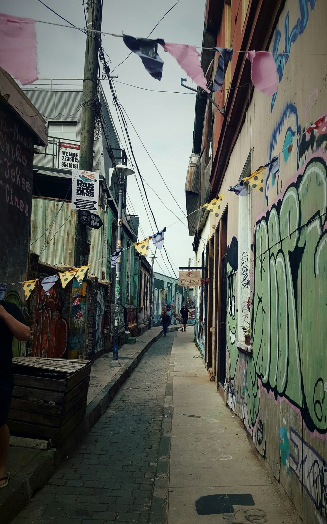 Die Walking tour lohnt sich: bunt, bunter, am buntesten – das Mekka für Graffiti und Streetart. Wir hören viel über die Geschichte Chiles, an jeder Ecke kleine Cafés und Restaurants, enge Gassen, wir dürfen hausgemachte Alfajores (Keks mit dulce de leche) probieren und am Ende gibts chilenischen Schnaps. Abends machen wir es uns gemütlich, trinken Wein und vertrauen uns so einige weitere persönliche Geschichten an, was uns einander noch näher bringt. Tiff hat einfach eine unglaublich herzliche Art und möchte die Menschen, die sie liebt, glücklich machen. Zusammen mit ihrem unschlagbaren Humor ergibt das eine Kombination, die gut tut, erfrischend ist und man sie einfach gerne um sich hat.