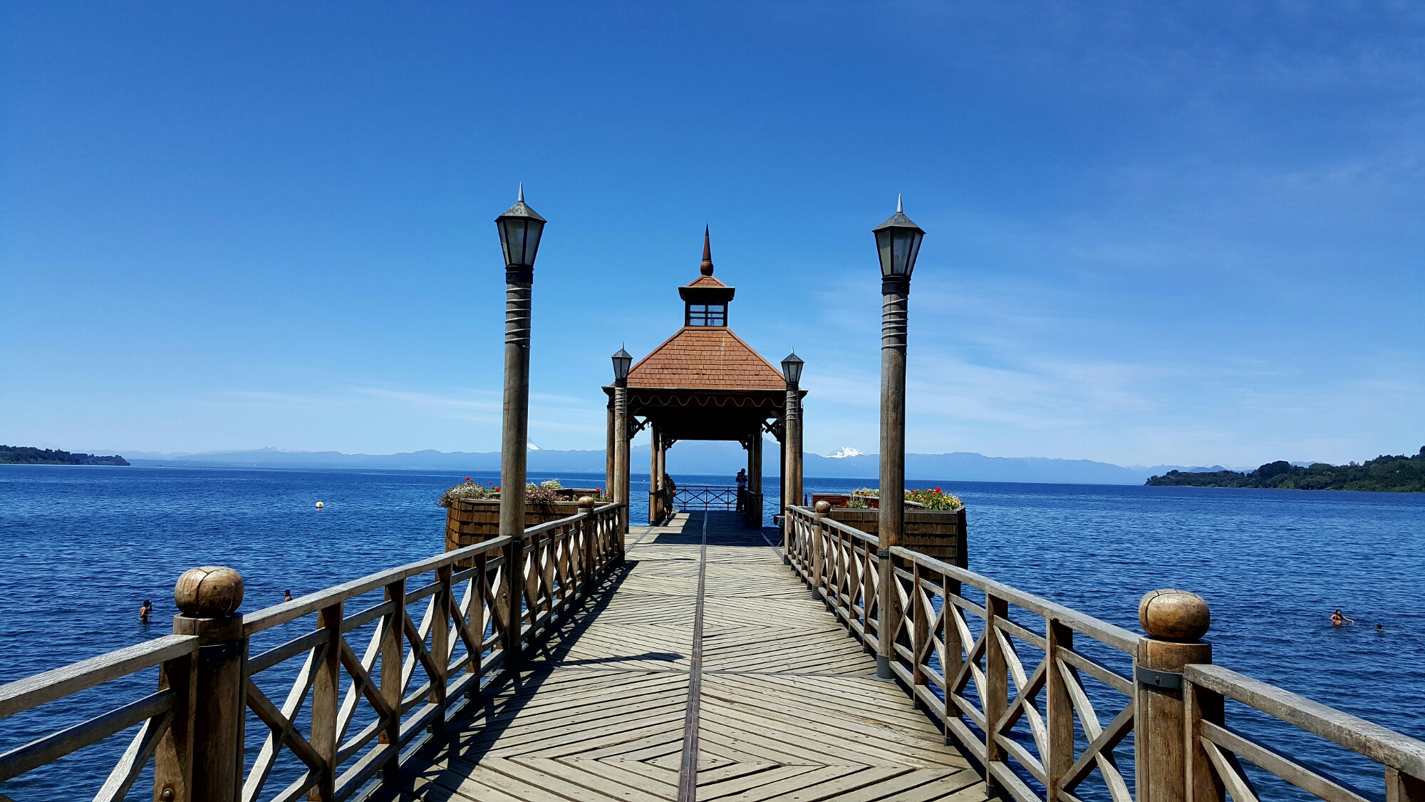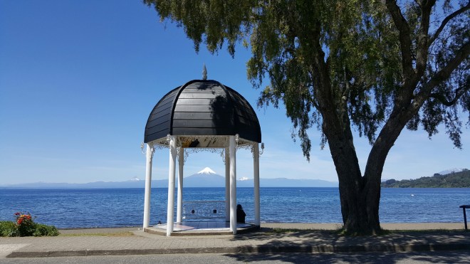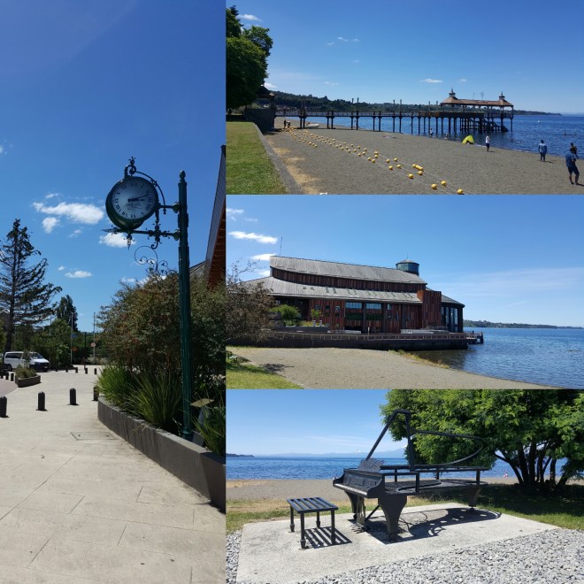 Mit knurrendem Magen komme ich in Frutillar an und verdrücke direkt meine Erdnussbutterbrote und einen Apfel. Der Ort ist wirklich winzig: malerischer See mit Steg, eine Konzerthalle, Cafés, die deutschen Kuchen anbieten und ein paar Restaurants. Weiter oben am Berg gibts nen kleine Park, da bringt mich jetzt aber keiner hoch. Dass die hier alle so abfahren auf typisch deutsche Häuser – siehts bei uns wirklich so aus? Ich schlendere durch zwei Straßen, knipse schöne Bilder am See und dann steht der Heimweg an.