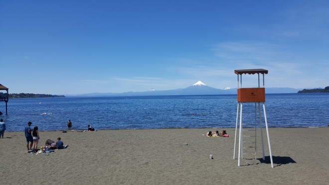 Puerto Varas ist postkartentauglich: direkt an einem riesigen See umgeben von Vulkanen. Einer davon ist Anfang letzten Jahres ausgebrochen, die Lawa schoss elf Kilometer in die Höhe – elf Kilometer! Das muss man sich mal vorstellen. Ein paar Häuser wurden durch die herabfließende Lawa zerstört, aber zum Glück niemand verletzt.