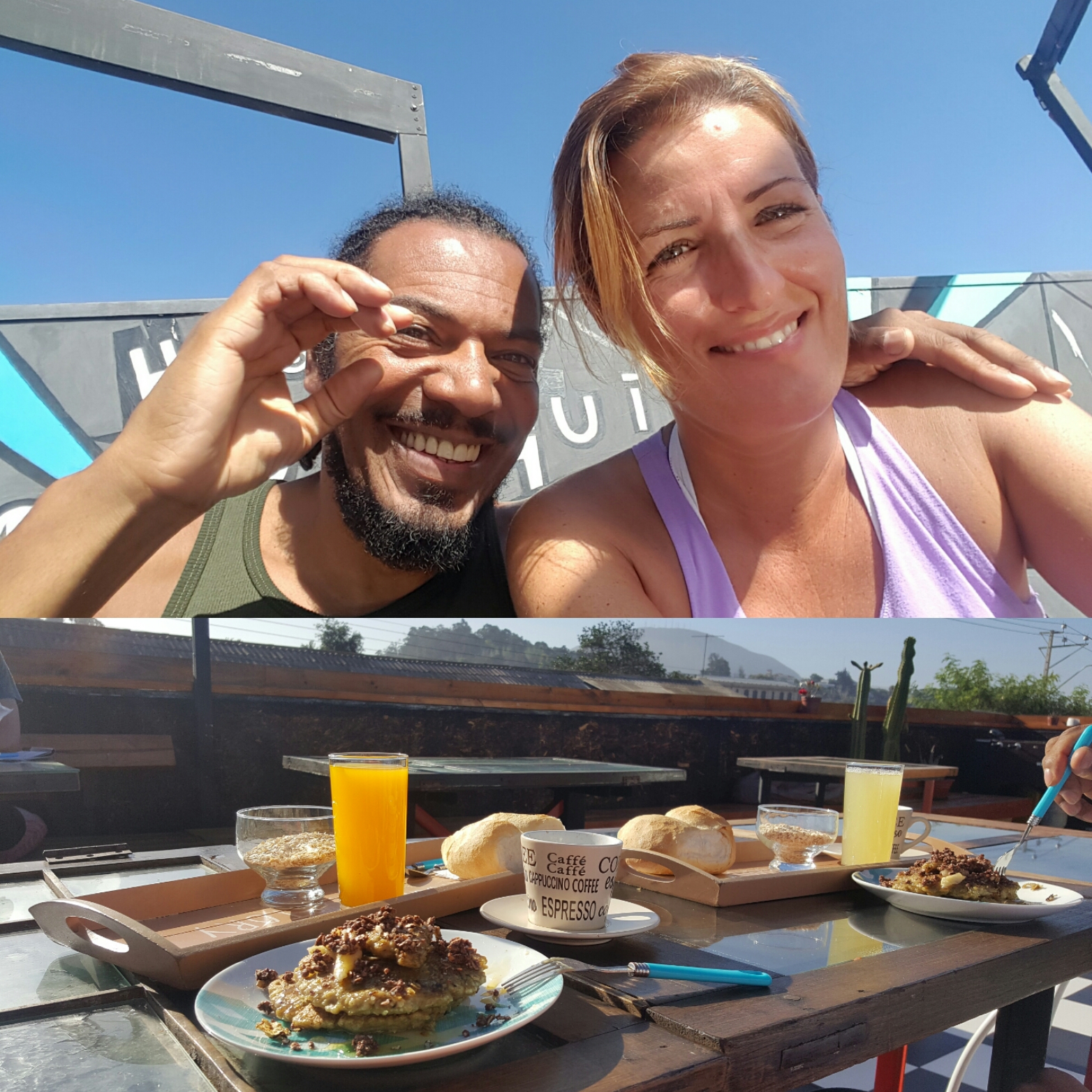 Danach verbringe ich gefühlt zwei Stunden am Meer; als ich heimkomme, ist es nach sechs Uhr abends. Geburtstagsessen: vegane Pfannkuchen mit Banane. Als ich so auf der Terrasse sitze, viele Glückwünsche auf dem Handy lese und denke, irgendwie seltsam, wenn einen keiner drückt, stürmt auch schon die Schweizerin auf mich zu, die gerade von ihrem Ausflug zurück ist (ihr hatte ich vor zwei Tagen meinen Geburtstag verraten). Sie ist wunderbar herzlich, obwohl wir uns kaum kennen und ganz überrascht gratulieren mir dann auch die Menschen, die mit mir am Tisch sitzen.