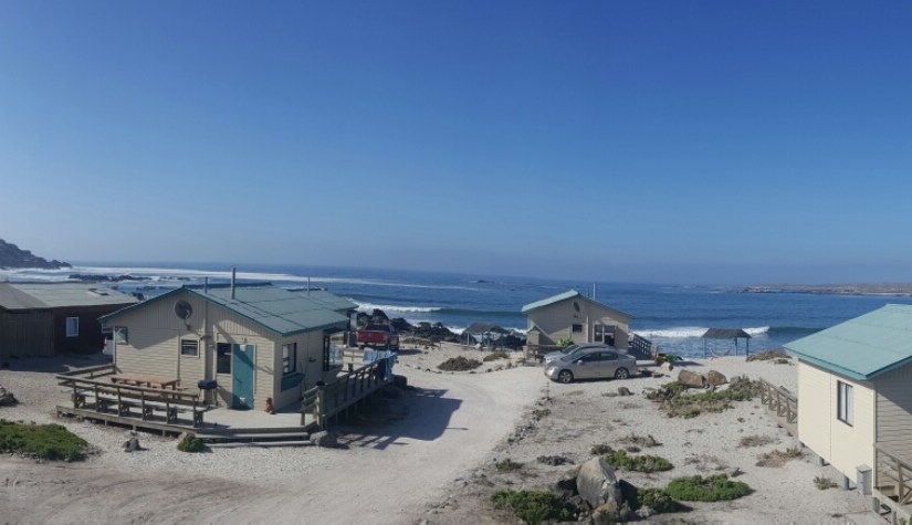 Den nächsten Tag gehen wir gemütlich an und laufen zu einem Strand, der etwa eine Stunde entfernt liegt und weit und breit kein Mensch zu sehen. Einmal ins wirklich eiskalte Nass muss sein. Als ich gerade alleine draußen liege, nähert sich von hinten ein Wüstenfuchs, er scheint vorne im Sand etwas vergraben zu haben. Da er mehrmals hin und her läuft, bekommen die Mädels ihn auch noch zu sehen.