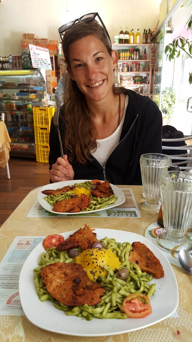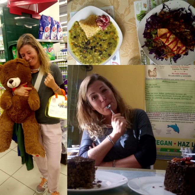 Ausflugsziel Nummer eins hier sind die berühmten schwimmenden Inseln, wo man Naturvölkern begegnet, allerdings hören wir nichts Positives von dort: super touristisch, für alles muss man Geld bezahlen, daher entscheiden wir uns dagegen und nutzen den Tag für Organisatorisches – alles läuft wie am Schnürchen: wir kaufen unser Busticket für die Weiterreise, verbringen eine Stunde im Supermarkt mit glücklichmachender Auswahl und treiben dort unseren Schabernack, entdecken eine Bäckerei, welche Debbies Schokosucht befriedigt, besorgen uns eine Simkarte für Peru und essen dann im veganen Restaurant um die Ecke das Mittagsmenü für lächerliche vierzehn Soles (4€), was uns geschmacklich umhaut: Getränk, Salatteller, Suppe, Hauptgericht, Dessert – und alles einfach nur megalecker! Ein Blick zwischen uns genügt und wir wissen, morgen kommen wir wieder!