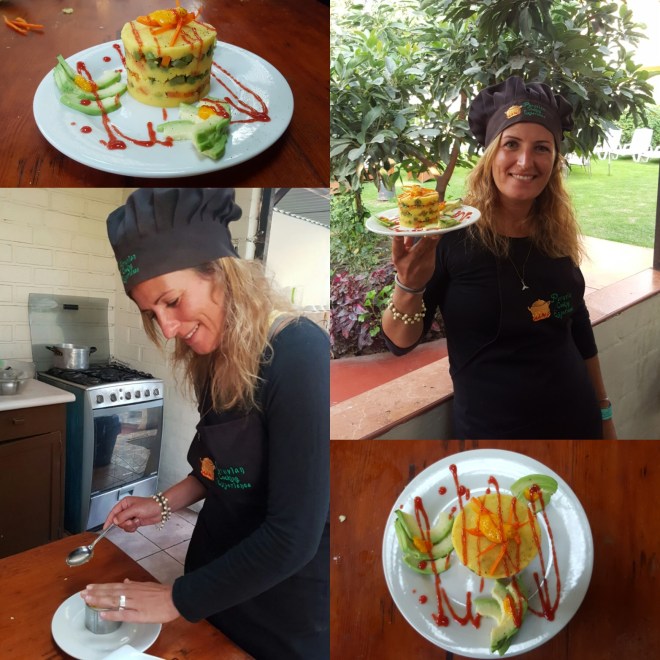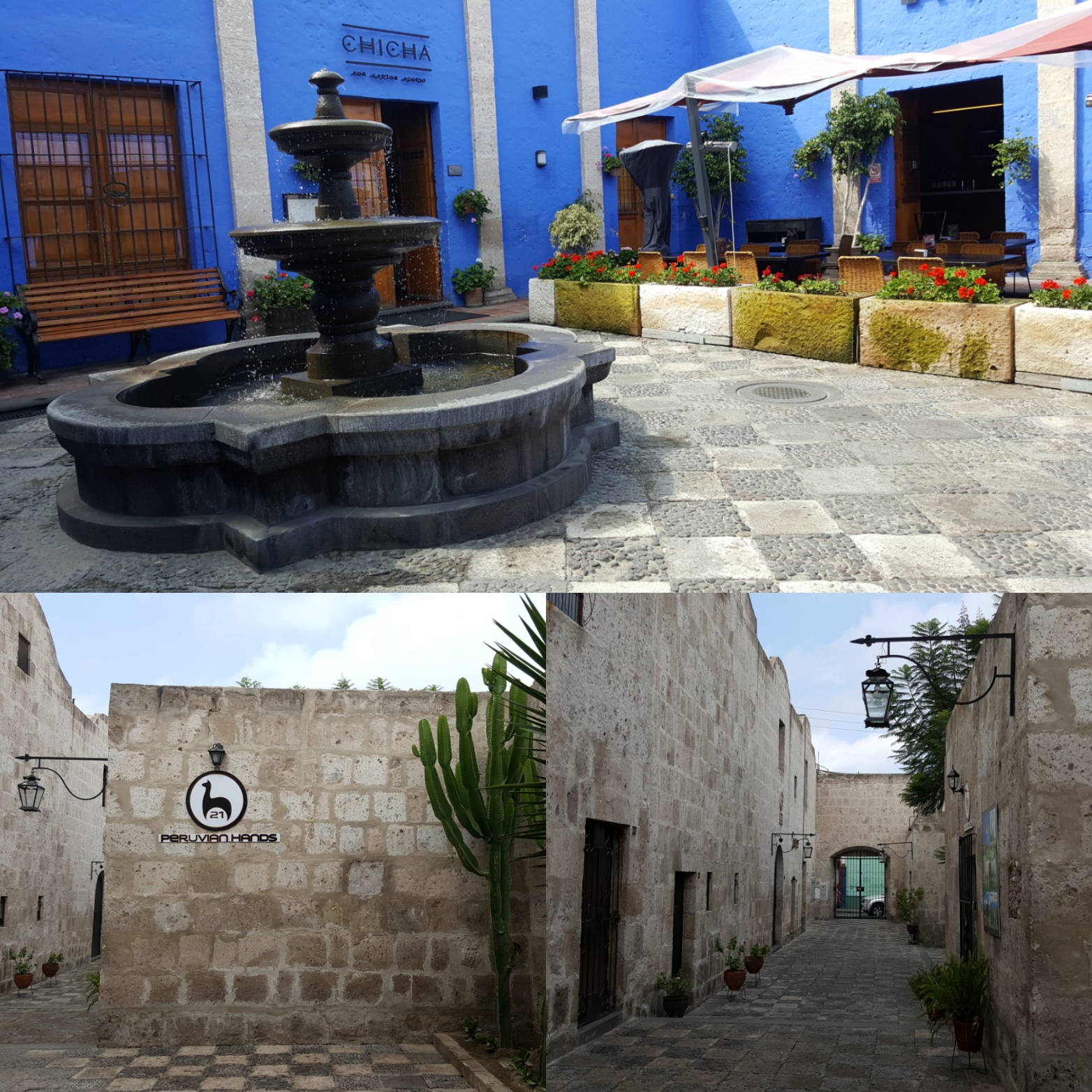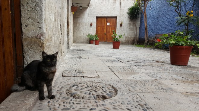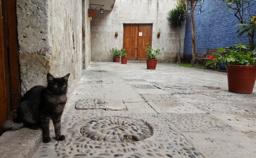 In Arequipa angekommen quatsche ich auf dem Weg zur Unterkunft wie immer mit dem Taxifahrer und hole so die ersten Infos zu Wetter und Sicherheit ein. Mein Hostel liegt direkt an der Altstadt, bis zum Check-in döse ich im Wohnzimmer und google, was man so machen kann hier: es gibt einen berühmten Canyon, den man innerhalb von zwei bis drei Tagen durchwandert, kostet aber auch einiges. Für heute Nachmittag melde ich mich spontan zum Kochkurs an, da hab ich Bock drauf. Peruanische Küche soll eine der besten sein, das passt und vegane Alternative bieten sie auch an, perfekt. In einem großen Innenhof mit Garten trudeln die Teilnehmer ein, außer mir und einer weiteren Frau alles Pärchen. Die Köchin macht einen sympathischen Eindruck, ist mir nur ein kleines bisschen zu steif, vielleicht bin ich aber auch zu kritisch und sensibel.