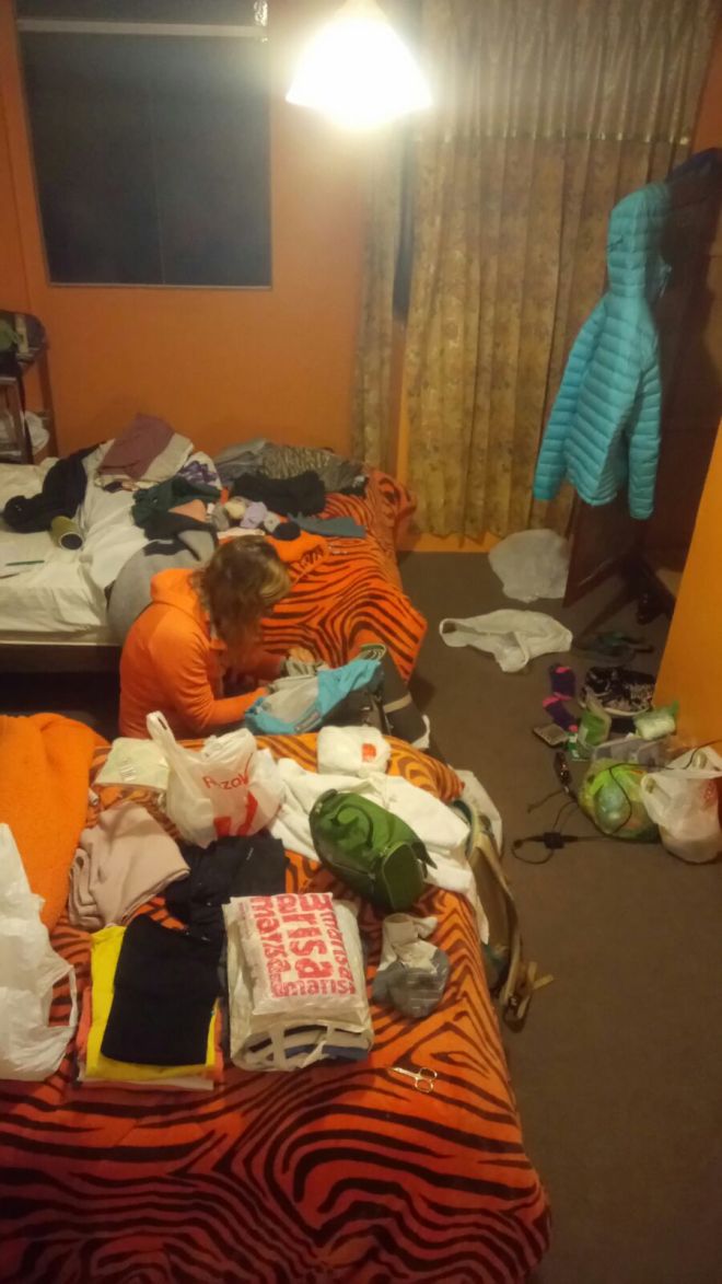 Zurück im Hostel chillen wir erst in der Sonne, dann im Bett – es regnet wieder, wir sortieren unser Hab und Gut, trinken dabei Wein und hören Musik; abends wird gekocht.