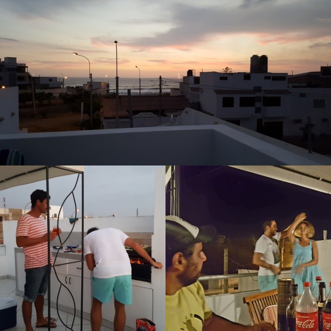 Die Jugend macht sich irgendwann auf den Weg zu einer Hausparty und so sitze ich mit Manu hier noch entspannt mit einem Glas Wein in der Hand. Wir quatschen über dies und das, es ist fast Mitternacht, als er mich auf einmal fragt, ob ich Lust habe, ans Meer zu fahren. Er hat in Punta Hermosa mit Freunden über den Sommer ein Haus gemietet. Mich zu fragen, ob ich Lust auf Meer habe…tsss…keine Sekunde muss ich überlegen und so packen wir innerhalb von zehn Minuten unsere Tasche für zwei Nächte und sind keine Stunde später da: Meeresrauschen, ich kann es riechen, sandige Straßen… hier fühle ich mich zuhause. Ich erlebe ein Wochenende mit interessanten Menschen, die mich liebevoll in ihren Kreis aufnehmen, gutem Essen, Meer, Sonne und traumhaftem Sonnenuntergang.