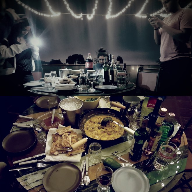 Manu hat einen Mitbewohner, Pablo aus Mexiko, der ein Auslandssemester hier an der Uni macht, wo auch Manu unterrichtet; hauptsächlich führt er aber sein eigenes Start-up Unternehmen. Am Freitagabend kommen drei weitere Mädels aus Mexico, mit denen Pablo studiert und wir genießen den Abend auf Manus spektakulärer Dachterrasse.