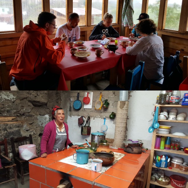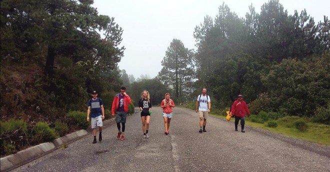 An meinem ersten Tag hier schlendere ich mit drei Jungs aus dem Hostel über den Markt und dann steuern wir den Berg hinauf, um uns Oaxaca (gesprochen „Oahaka“) von oben anzusehen. Phil aus Wales macht zwei Wochen Urlaub, zweifelt allerdings auch schon lange an dem Lebenskonzept, bis zur Rente zu schuften in einem Beruf, der ihn nicht wirklich erfüllt. Nach einem für mich irritierenden Start, in dem er ein paar aggressive schnippige Kommentare in meine Richtung macht, da er sich wohl von mir als Veganer angegriffen fühlt, bringt er mich doch oft zum Lachen – sein britischer Humor ist köstlich. Zusammen mit ihm, Chloe und drei weiteren Reisenden begeben wir uns am nächsten Tag auf einen gemeinsamen Ausflug: um sieben Uhr morgens nehmen wir den Bus in den Ort Cuajimoloyas, mit einer stolzen Höhe von 3200 Metern. Dort angekommen verlässt uns kurz jeglicher Antrieb, denn es regnet in Strömen, es ist kalt und die dichte Wolkendecke macht wenig Hoffnung. Wir entscheiden, erst einmal frühstücken zu gehen, danach sieht die Welt sicher schon besser aus.