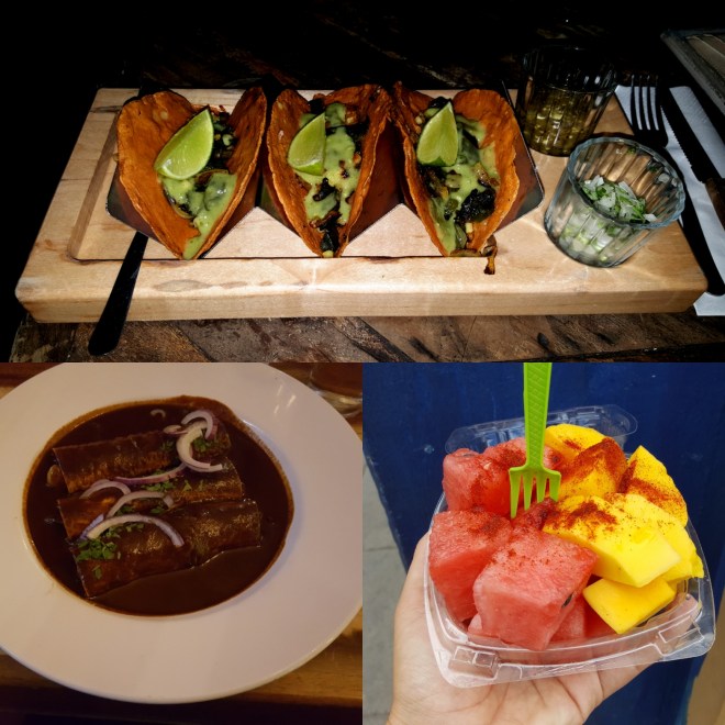 Nach knapp zwölf Stunden kommen wir zurück nach Oaxaca und testen auf Empfehlung des Hostelbesitzers eine Tacobar – megalecker! An Mole kommt man hier übrigens auch nicht vorbei und muss man probiert haben: quasi das mexikanische Curry mit über zwanzig Gewürzen, wobei die Zusammensetzung sehr unterschiedlich sein kann. Abgerundet wird das Ganze dann mit Schokolade.