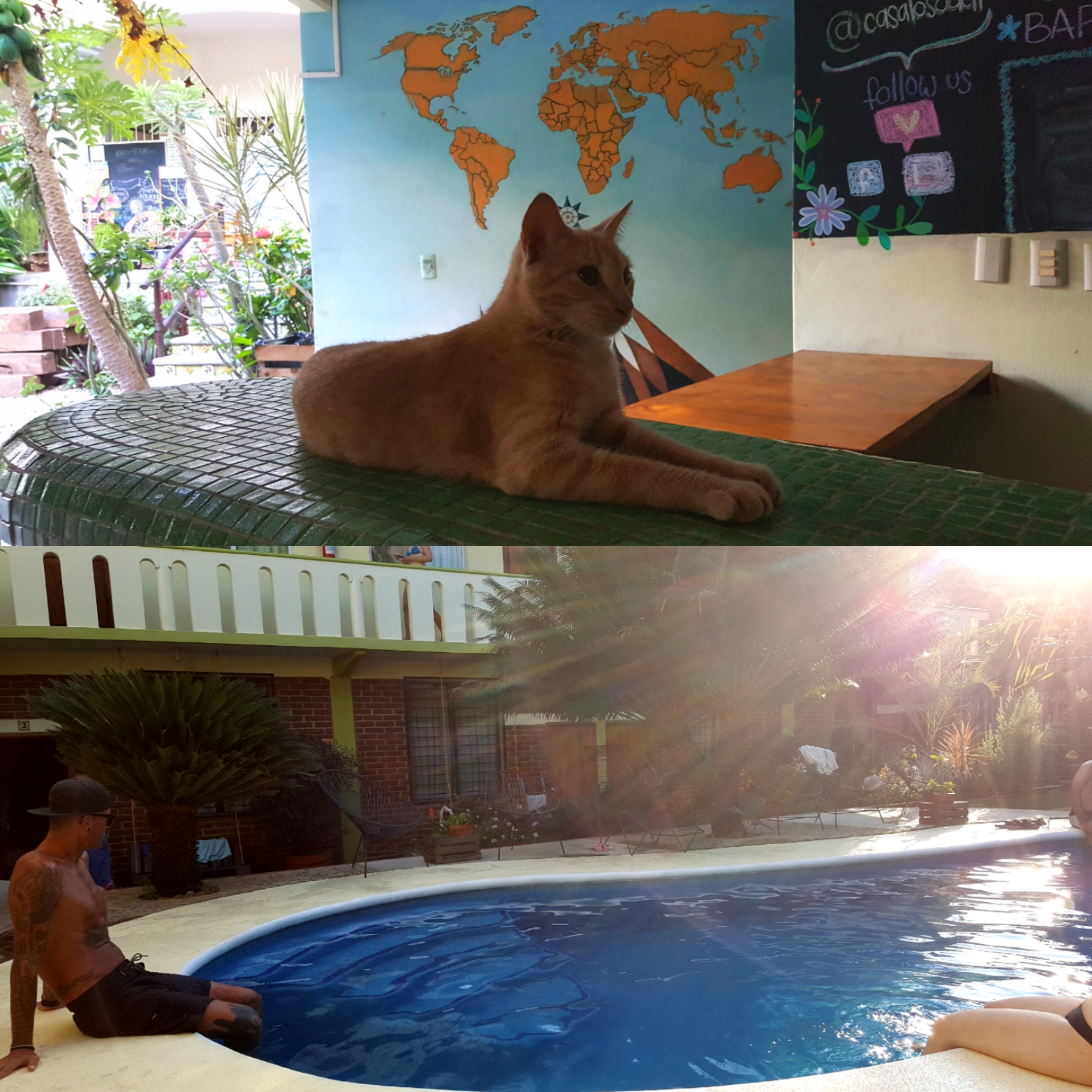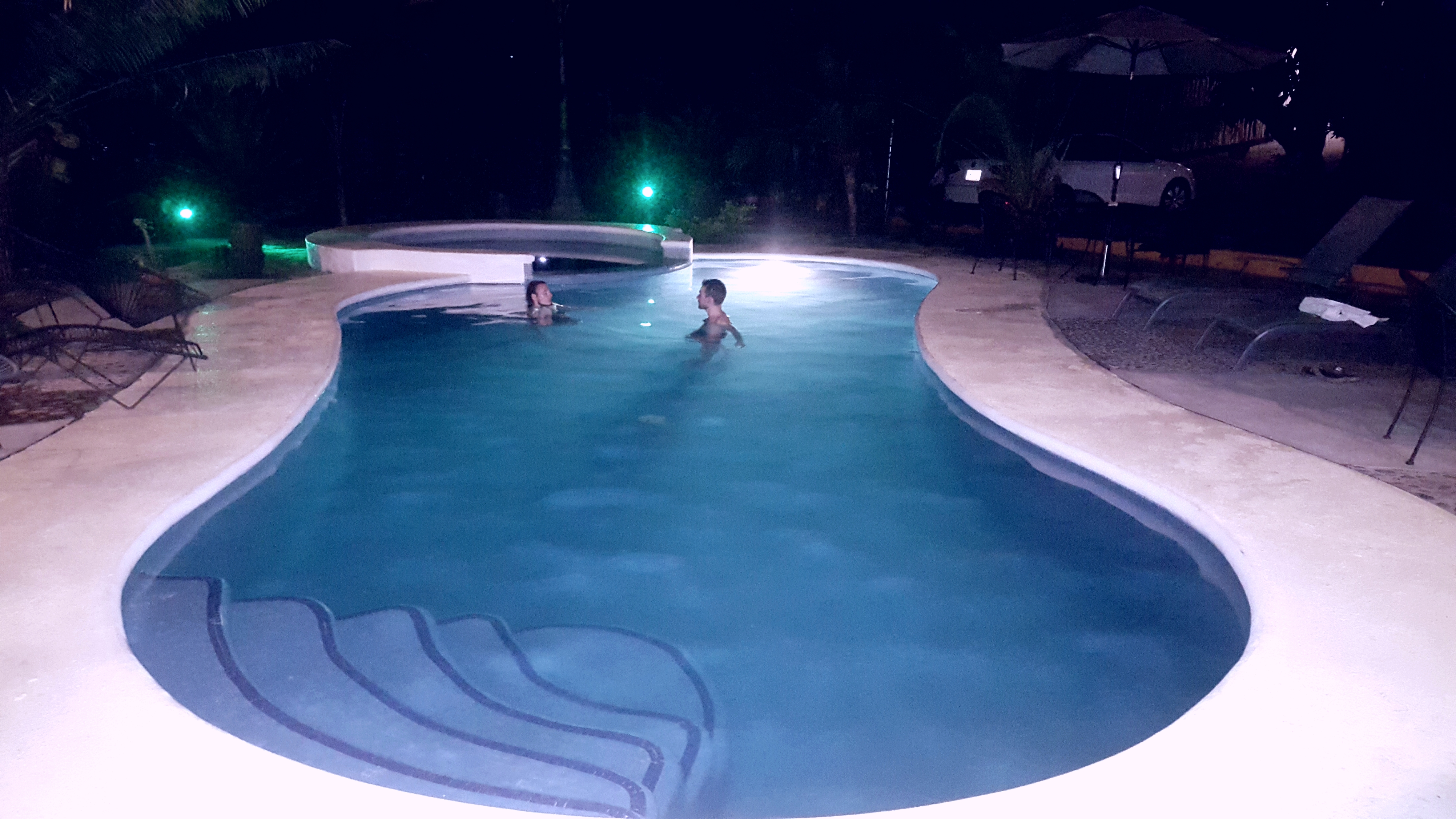 30 Grad, hohe Luftfeuchtigkeit und direkt am Meer: da steigt meine Laune ganz automatisch mit Vorfreude auf den Strand. Unser Hostel Casa Losodeli liegt nur zehn Gehminuten entfernt. Wir werden freundlich empfangen und in unser Zimmer geführt, welches direkt hinter dem Pool liegt, dessen Anblick mir ein ‚wow!‘ entlockt. Der ist ja groß genug zum schwimmen – geil!