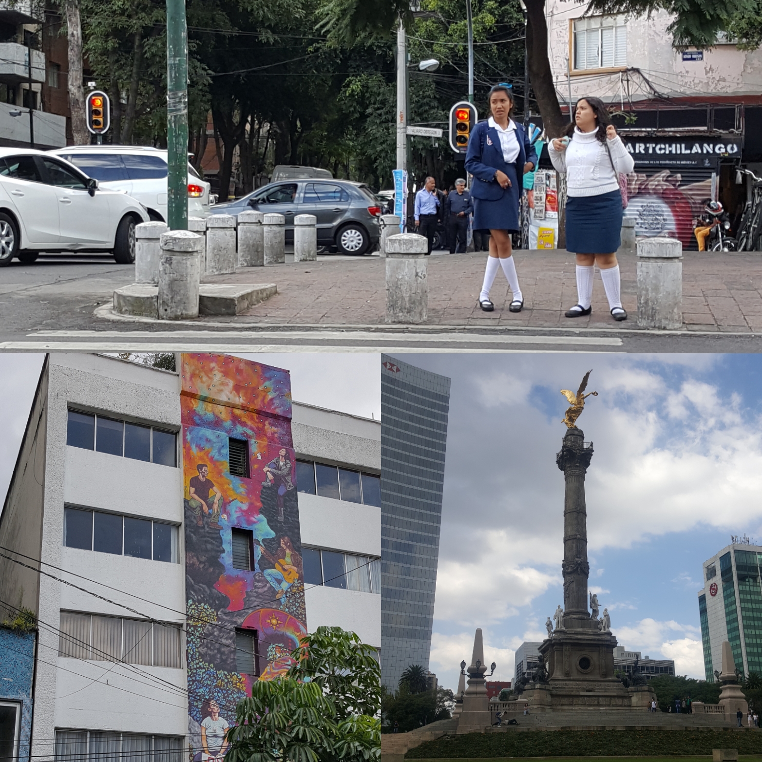 Mein Eindruck von der Megastadt: überall streetfood, die Schärfeauswahl genau nach meinem Geschmack, Tacos für 15Pesos (=0.7€), saubere Straßen, bunte Häuser, hippe Stadtviertel, Plakatwerbung mit weißen Menschen, die komplett am typischen Mexikaner vorbeigeht. Getrennte Abteile in der Metro für Männer und Frauen/ Kinder zum Schutz der Frauen – es gab wohl ein paar Fälle von Übergriffen, Smog, Neugier der Leute. Vom ersten Moment an komme ich mir vor wie ein bunter Vogel: alle starren mich an mit meinen hellen Haaren und größer als die meisten Mexikanerinnen bin ich auch.