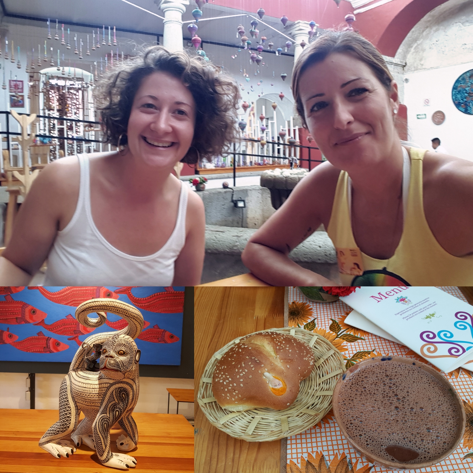 Chloe und ich werden nun wirklich gemeinsam weiterreisen und verbringen unseren letzten Tag in Oaxaca entspannt in Museen und Galerien, trinken Chocolate con agua mit Pan de muerte und ich erfahre etwas mehr über sie: ein Bruder, vier Pflegegeschwister, enge Bindung zur Familie, von ihrer Mutter spricht sie sehr respektvoll und wertschätzend, bewundert, was diese geleistet hat. Chloe ist Hebamme mit Leidenschaft; mit achtzehn geht sie nach Bolivien zur Freiwilligenarbeit und reist danach in Südamerika. Immer wieder stutze ich, was sie in ihrem jungen Alter schon alles unternommen hat. Ich bin froh, ihr begegnet zu sein, denn sie ist erfrischend, unterhaltsam und sehr angenehme Gesellschaft.