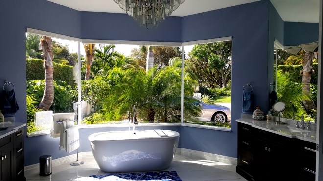 Mir verschlägt es die Sprache, als er uns im Haus herum führt. Marmorböden, riesiger Wohnbereich, alles verglast, die Fenster sind kugelsicher (das wurde ihm vom Fensterbauer vorgeführt) und halten auch einem Hurricane stand – ein riesiger Pool mit knapp siebzehn Metern, Yamaha Klavier im Wohnbereich (man wollte mal Klavier spielen lernen). Es gibt ein Gästehaus, das wir ganz für uns haben könnten, doch wir wählen das Gästezimmer im Haupthaus, da die Klima hier nicht so kalt wird. Die Dimension des Wohlstands übersteigt meine Vorstellungskraft.