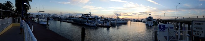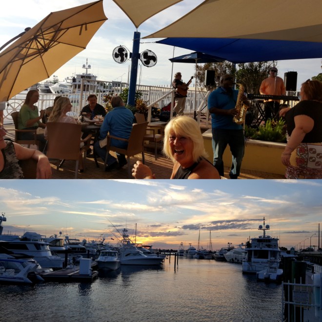 Sonntag: wir treffen eine Bekannte von Sherry und deren zwei Schwestern an einem Strand weiter nördlich: Jensen Beach auf Hutchington Island. Judy’s Schwester hat eine kleine Wohnung hier für den Winter – es gibt also auch weniger noble Modelle als Fred – und beide Schwestern sind zu Besuch auf Urlaub. Auf der Terrasse eines angesagten Restaurant an einem der vielen Bootshäfen lassen wir den Tag ausklingen.