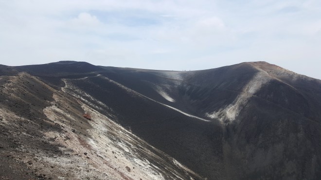 Nach über eine Stunde Autofahrt erreichen wir den Vulkan; der Wind hier kühlt angenehm.