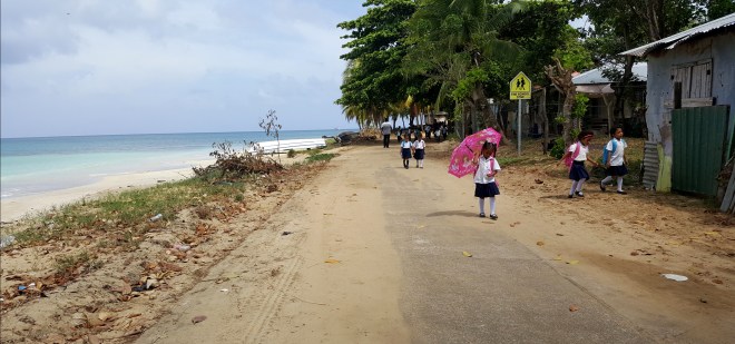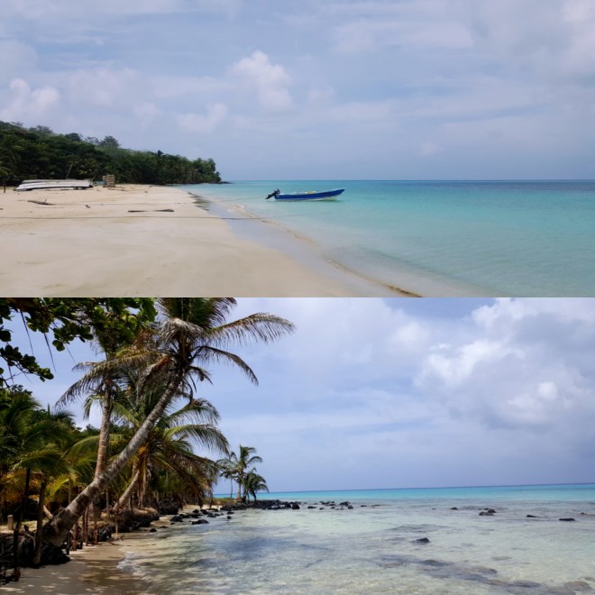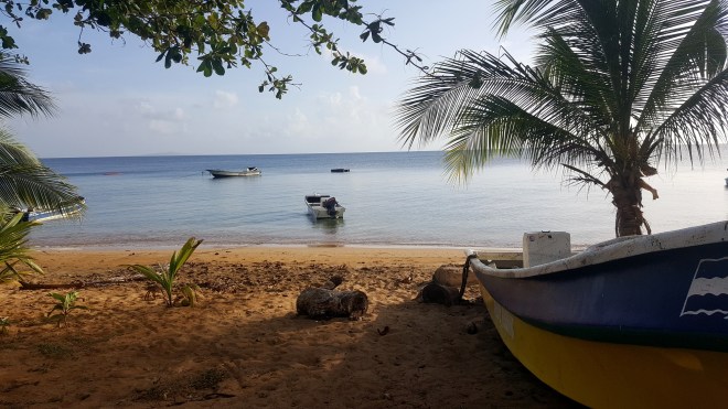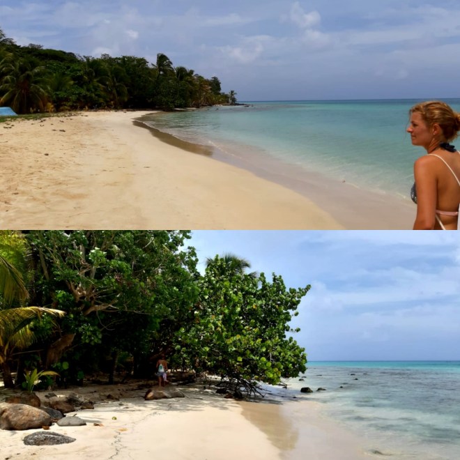 Unser Eindruck von den Inseln: Die Menschen auf dieser Seite des Landes sind freundlicher, das Aussehen karibischer, lockige Haare und helle Augen. Gesprochen wird kreolisches Englisch, was gewöhnungsbedürftig aber sympathisch ist, viele Gerichte werden mit Kokosnuss zubereitet, die kleine Insel ist sehr sauber, nur zweimal die Woche geht die Fähre zum Festland, viele Straßenhunde, die mitunter auch mal zubeissen, Tauchen und Schnorcheln sind die gängigen angebotenen Aktivitäten.