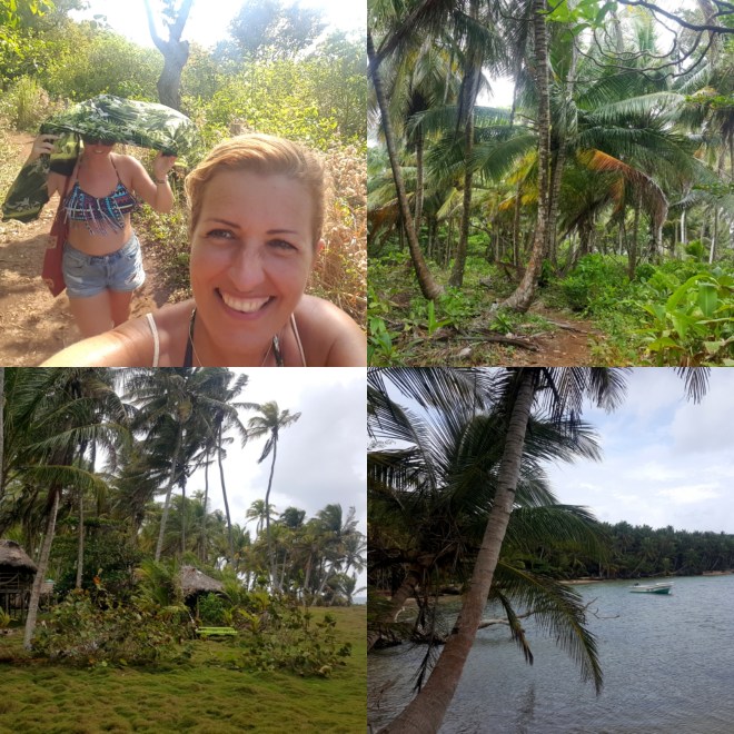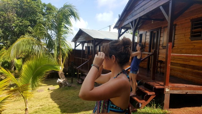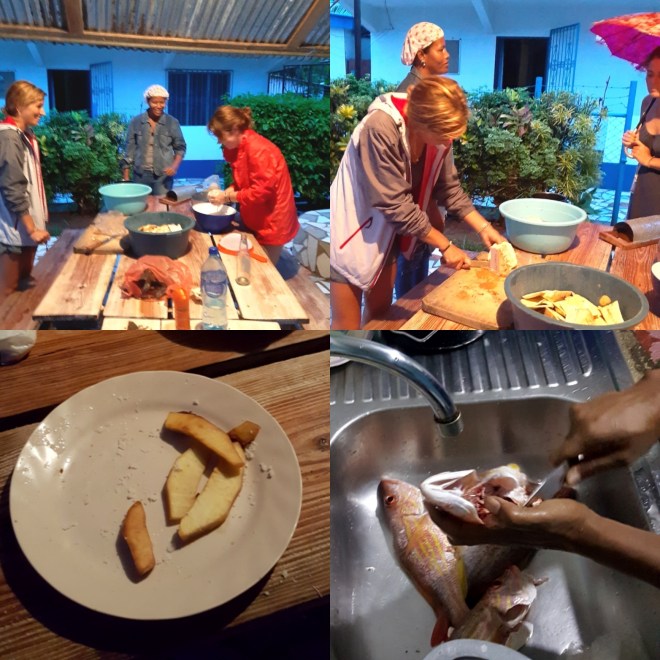 Wir freunden uns mit der Schwester des Hostelbesitzers an und sie kocht mit uns an einem Abend das traditionelle Gericht Rondon, bestehend aus Kartoffeln, Yam, Kochbananen und Fisch. Wir sind überrascht von dem intensiven leckeren Geschmack. Eine besondere Erfahrung, denn die Milch der Kokosnuss kommt nicht aus der Dose – wir durchlaufen den natürlichen Herstellungsprozess: Nuss aufhacken, Fleisch entnehmen, raspeln, in Wasser einweichen und Milch rauspressen. Wir lernen: die erste Pressung ist die beste, bis zu dreimal geht, die Raspel werden anschließend an die Hühner verfüttert.