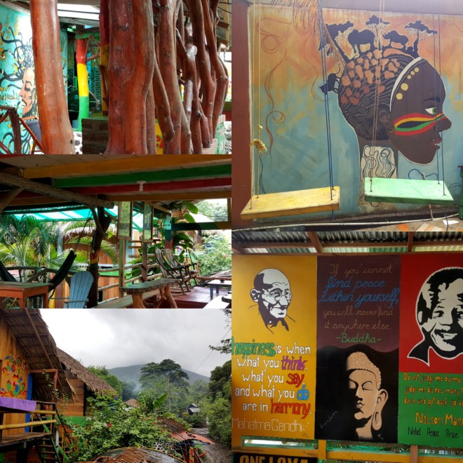 Unser Hostel gefällt uns sehr: viel Farbe, verschiedene Ebenen, viele Naturmaterialien verarbeitet, Malereien an den Wänden, geräumige Küche, Billardtisch, viele Rückzugsmöglichkeiten.