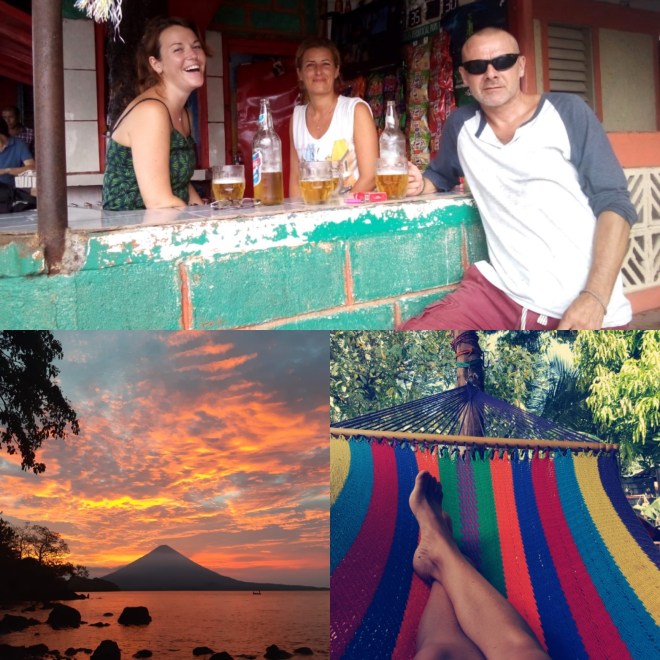Am Sonntag regnet es nonstop und wir sitzen im Hostel fest (wollten eigentlich zur Laguna de apoyo). Becs will noch länger hier in der Partystadt bleiben und so ist es Zeit Abschied zu nehmen – wann wir uns wohl wiedersehen? Mit Ali und Andy ziehe ich weiter nach Ometepe, die Insel mit zwei Vulkanen.