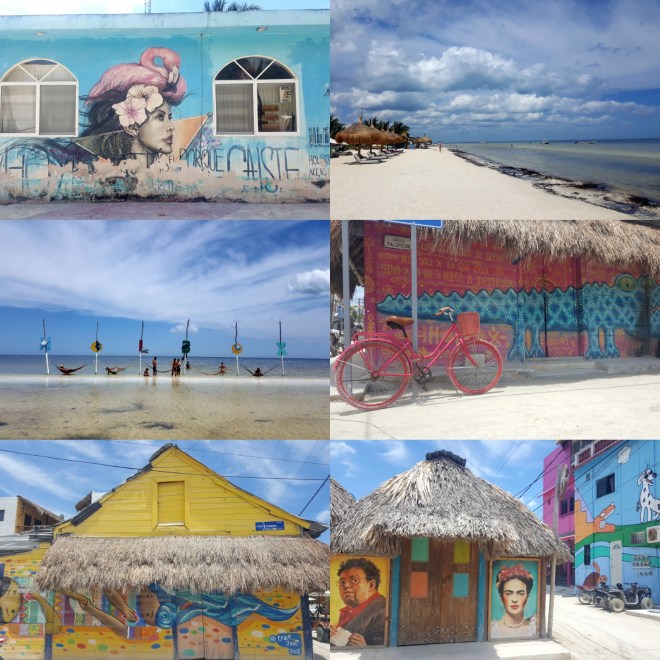 Mein Eindruck von Holbox: gutes Reiseziel um den Trubel zu entkommen, bunt, heiß, gutes Essen, gesellig, viele Cafés und Bars, gechillt, überall Sand.