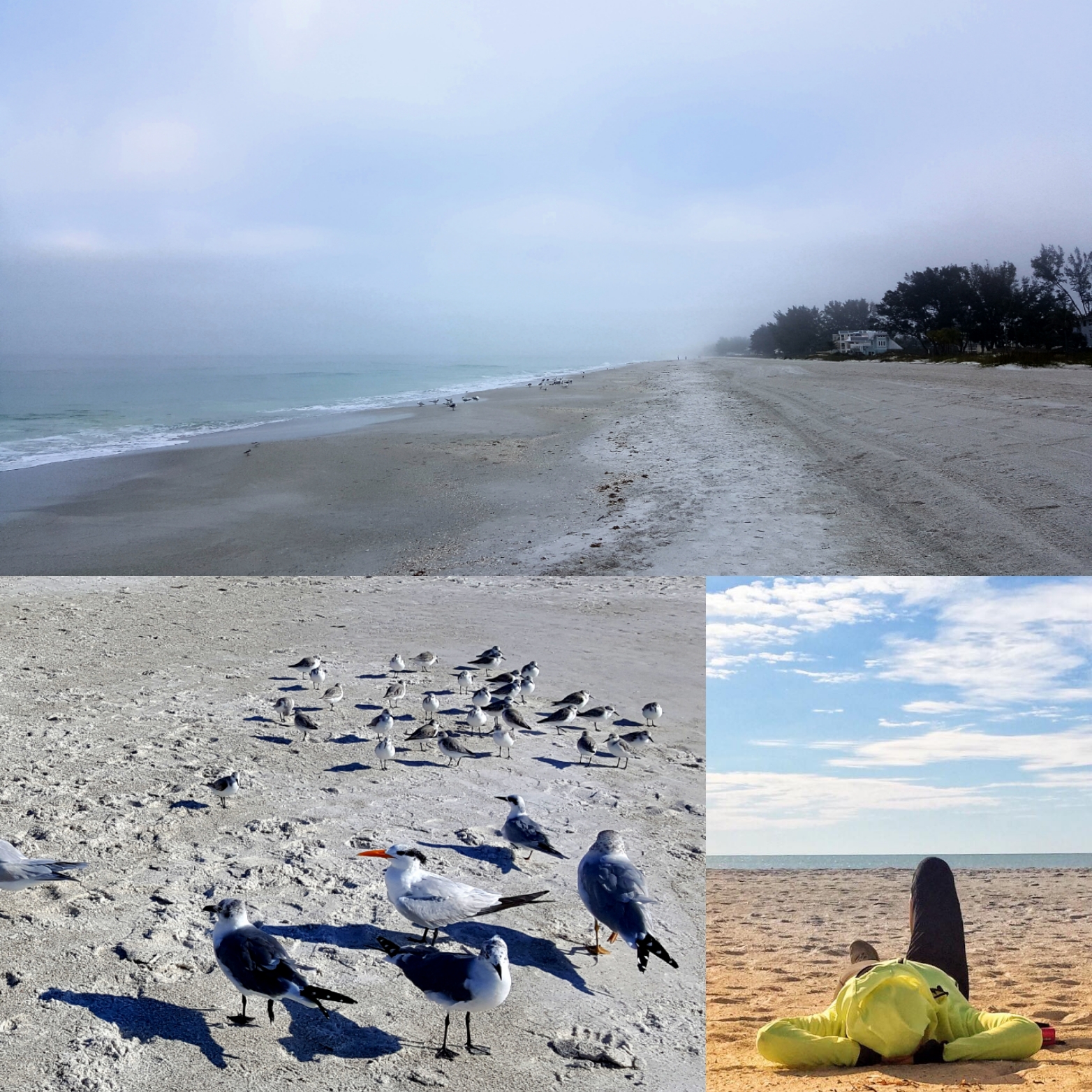 Bei einem Spaziergang am Strand zeigt Robyn mir die Umgebung – süße kleine Häuschen, eine lange Hauptstraße, die am Meer entlangführt, es ist Nebensaison, daher ziemlich ruhig und kaum was los am Strand; unerwartet kalt ist es! Im Norden Floridas hat es zum ersten Mal seit 29 Jahren geschneit, wir sind zum Glück etwas südlicher. Aber die Temperaturen sind gar nicht so wichtig, denn die Sonne scheint, wir sind am Meer, Sand, Möwen, Urlaubsstimmung – was brauche ich mehr?
