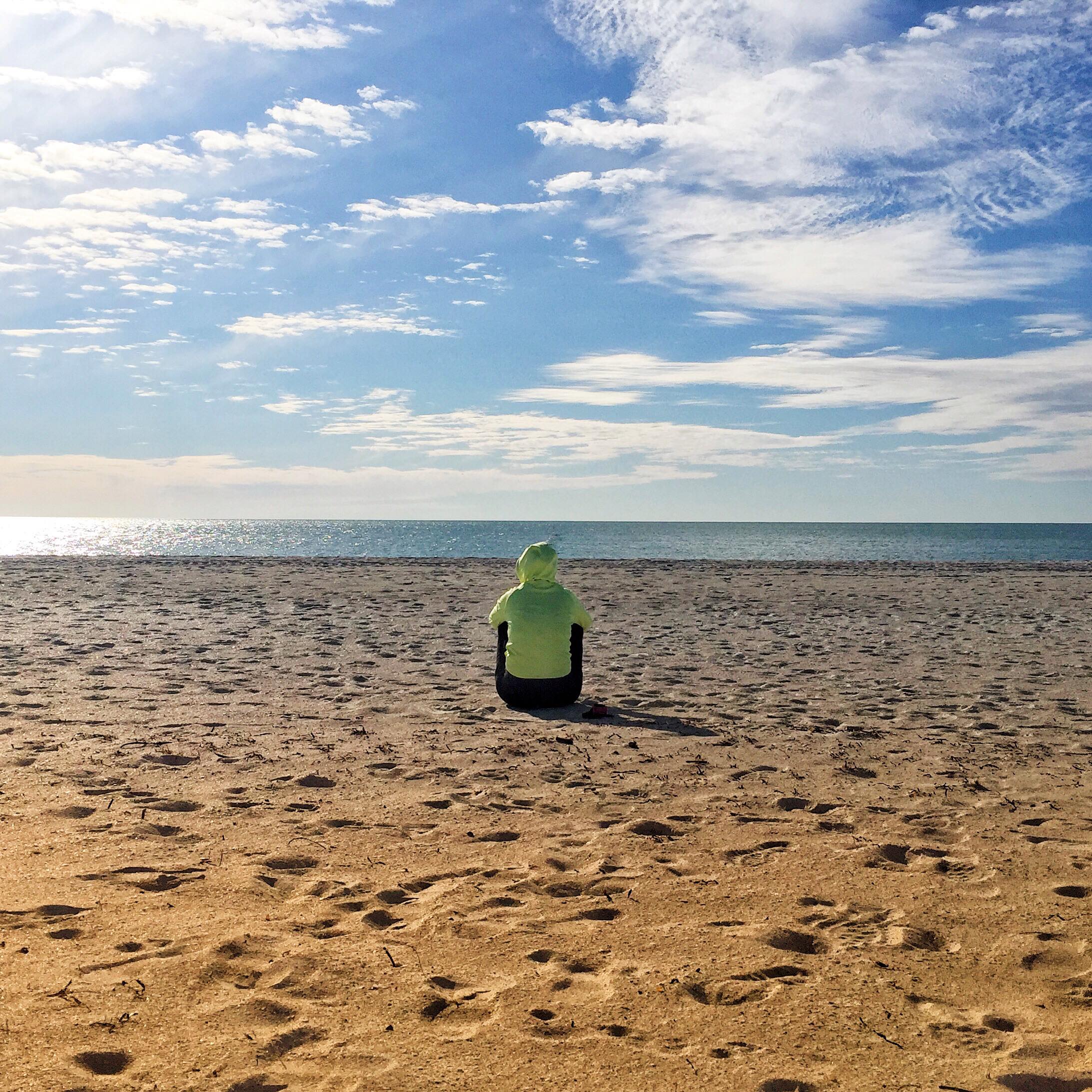 Ich bin zunächst etwas träge, aber Robyn motiviert mich, am Strand joggen zu gehen, was mich so vitalisiert, dass ich die übrigen Tage mit einem Lauf direkt am Meer kurz nach Sonnenaufgang beginne: Frühnebel, Stille des Morgens, den Geruch des Ozeans in der Nase, Meeresrauschen, Vögel folgen den Wasserbewegungen mit trippelnden schnellen Schritten und picken ihr Futter aus dem Sand, das knirschende Geräusch der Schuhe, kleine Muscheln überall. Abgerundet wird die morgendliche Routine mit einem Sprung ins eiskalte Wasser, das einem fast den Atem nimmt, gefolgt von Meditation.