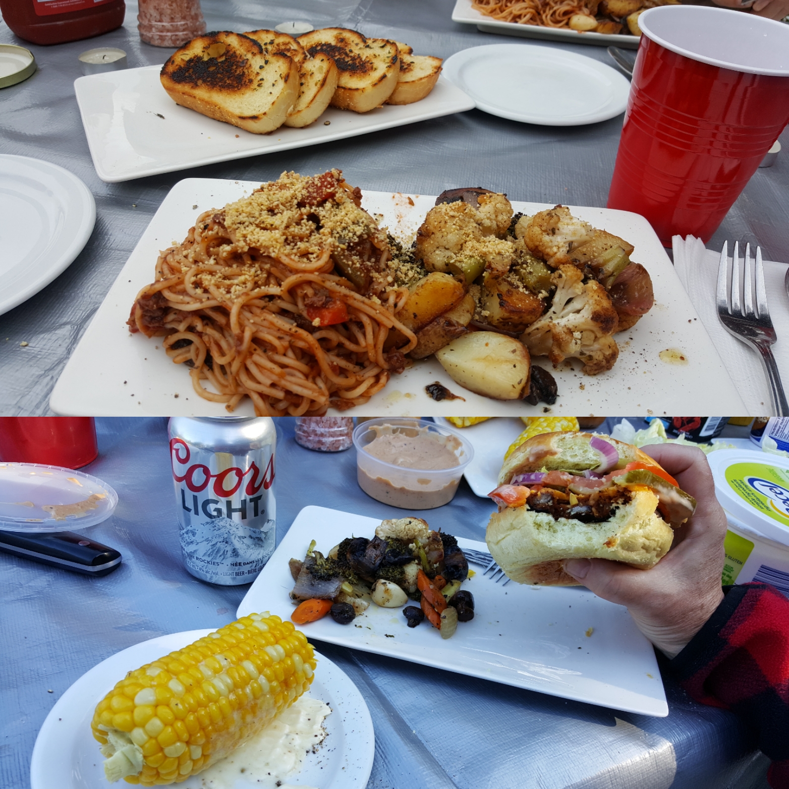 Nach dem Candlelightdinner am ersten Abend verwöhnen wir uns mit üppigem Frühstück und veganen Burgern – mobile Herdplatte machts möglich.