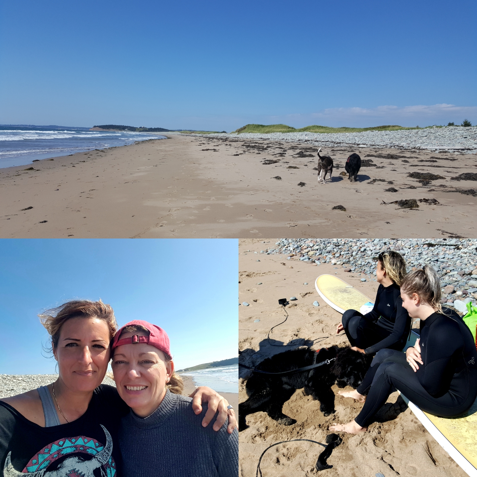 Spaziergang mit Sherry am Meer; Dude und Sundae genießen die Weite und Sundae nutzt mal wieder ihren Charme aus.