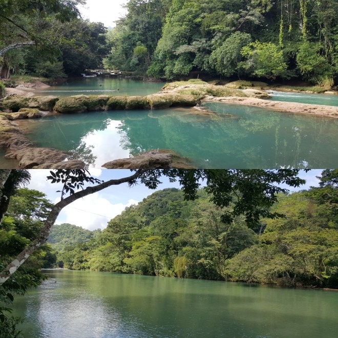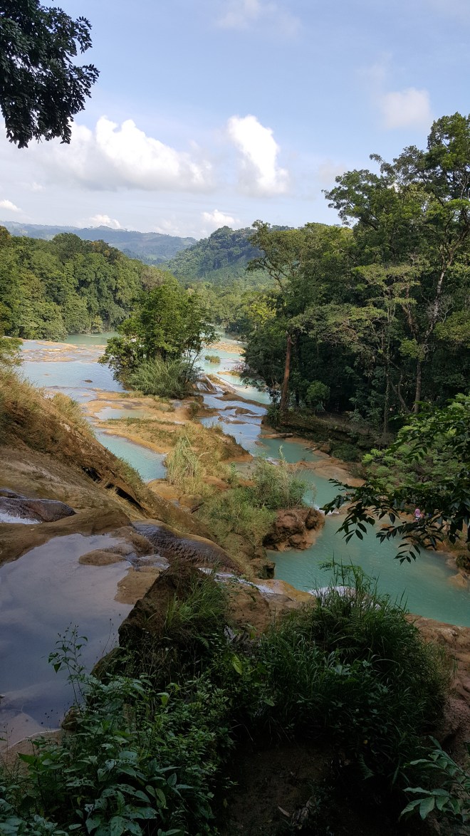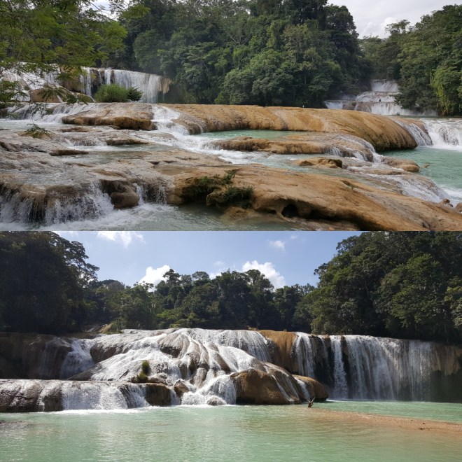 Wer in Mexiko reist, kommt an Ruinen und Tempeln kaum vorbei und so lege ich auf dem Weg an die Ostküste einen Zwischenstop in Palenque ein: morgens um vier werde ich am Hostel eingesammelt. Die Tour führt über beeindruckende Wasserfälle zu den Ruinen in Palenque. Guide suche ich mir keinen, nehme mir aber Zeit für die Schilder mit Infos auf dem Gelände. Brutal heiß ist es hier! Am selben Abend reise ich im Nachtbus weiter nach Bacalar.